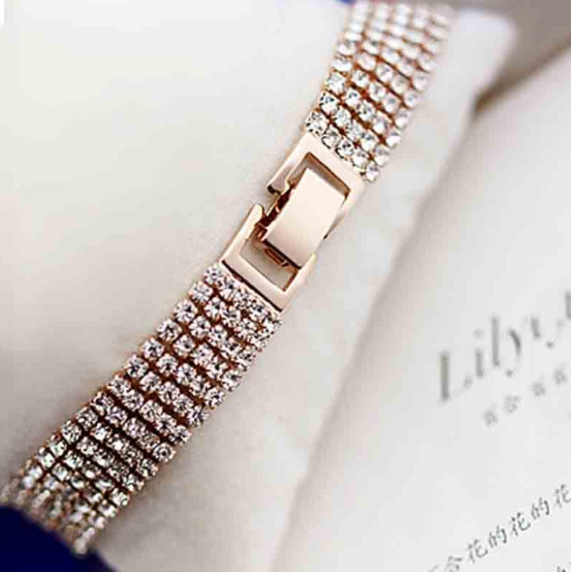 Браслет выполнен в классическом стиле из шести рядов страз, имеет застежку пряжку, длина браслета 17 см, ширина 2 см.